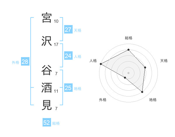 宮沢 谷酒見さんを姓名の画数から五運を鑑定