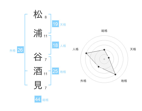 松浦 谷酒見さんを姓名の画数から五運を鑑定