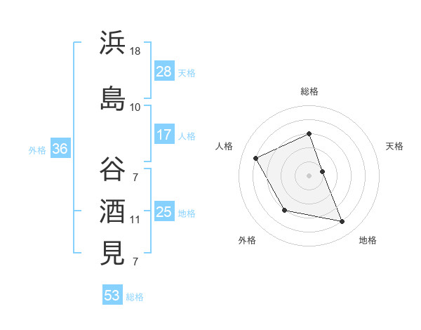 浜島 谷酒見さんを姓名の画数から五運を鑑定