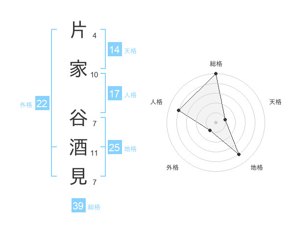 片家 谷酒見さんの地格は25画の4点!