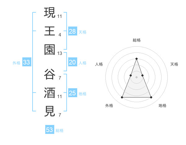 現王園 谷酒見さんを姓名の画数から五運を鑑定