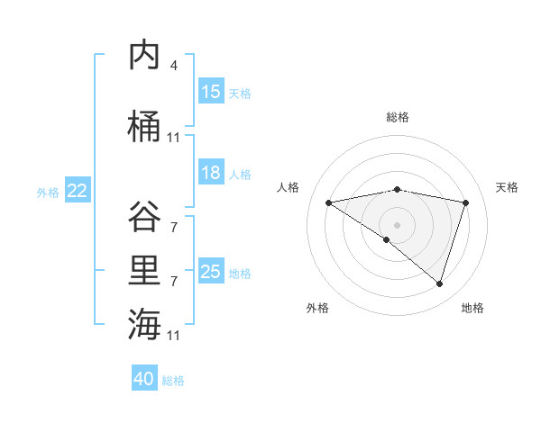 内桶 谷里海さんを姓名の画数から五運を鑑定