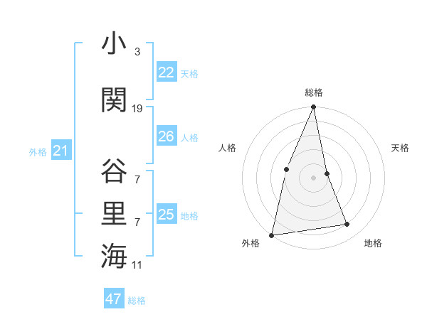 小関 谷里海さんの総格は47画の5点!