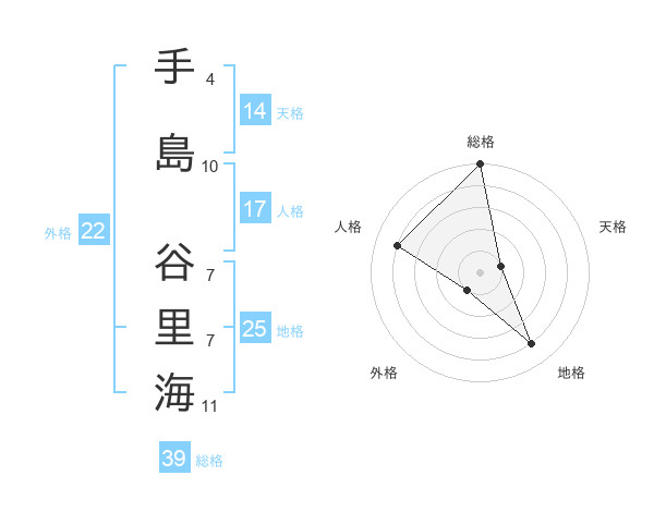 手島 谷里海さんを姓名の画数から五運を鑑定