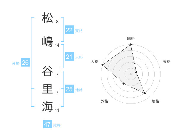 松嶋 谷里海さんの総格は47画の5点!