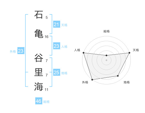 石亀 谷里海さんを姓名の画数から五運を鑑定