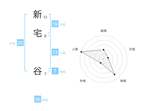 新宅 谷さんの総格は26画の2点!