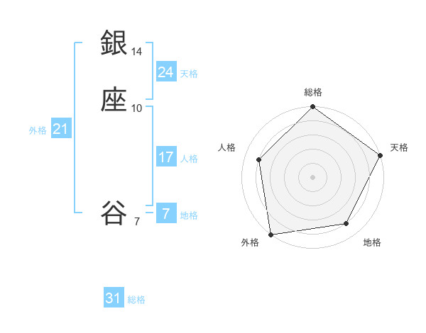 銀座 谷さんの総格は31画の5点!