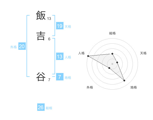 飯吉 谷さんの総格は26画の2点!