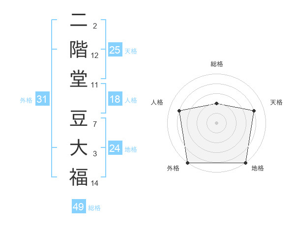 二階堂 豆大福さんを姓名の画数から五運を鑑定