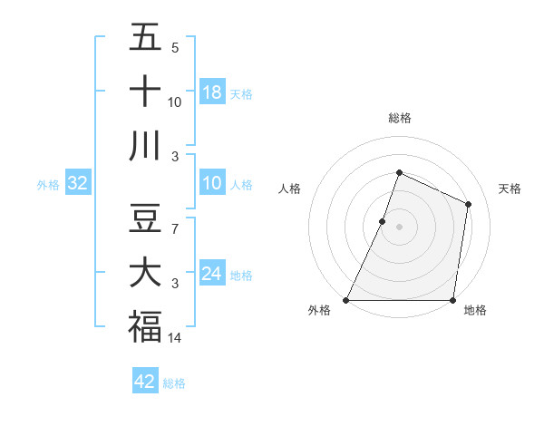 五十川 豆大福さんを姓名の画数から五運を鑑定