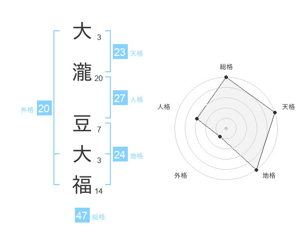 大瀧 豆大福さんを姓名の画数から五運を鑑定