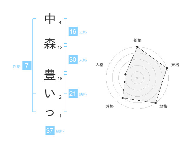 中森 豊いっさんを姓名の画数から五運を鑑定