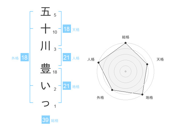 五十川 豊いっさんを姓名の画数から五運を鑑定