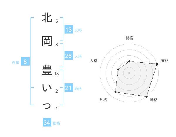 北岡 豊いっさんを姓名の画数から五運を鑑定
