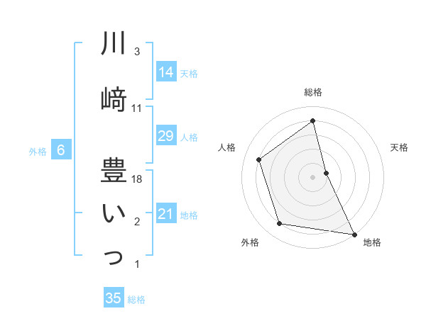 川﨑 豊いっさんを姓名の画数から五運を鑑定