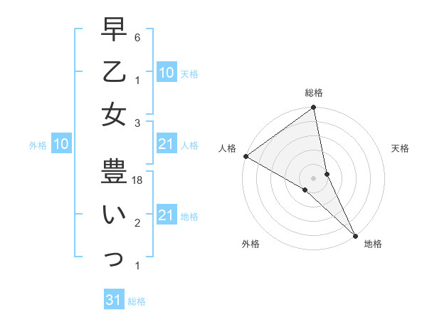 早乙女 豊いっさんの人格は21画の5点!