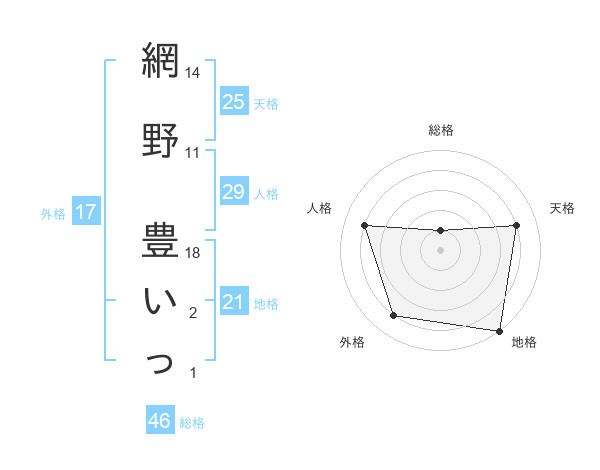 網野 豊いっさんの地格は21画の5点