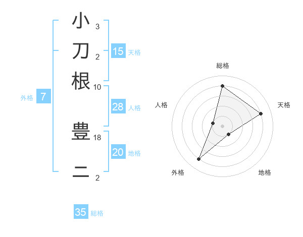 小刀根 豊ニさんを姓名の画数から五運を鑑定