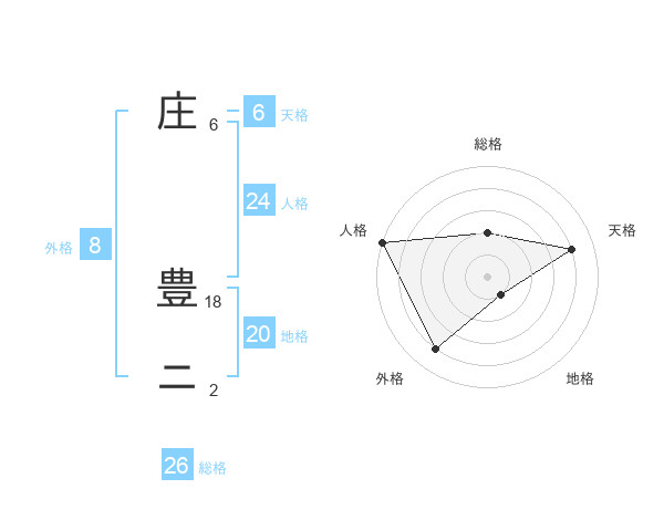 庄 豊ニさんを姓名の画数から五運を鑑定
