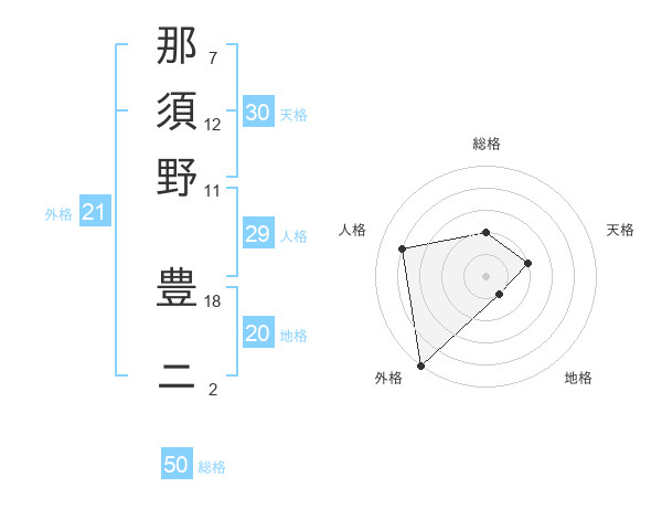 那須野 豊ニさんを姓名の画数から五運を鑑定