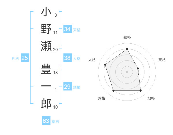 小野瀬 豊一郎さんを姓名の画数から五運を鑑定