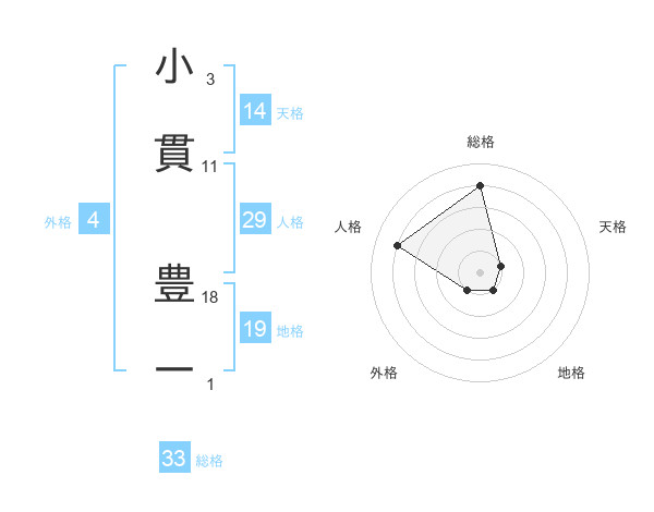小貫 豊一さんを姓名の画数から五運を鑑定