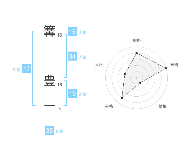 篝 豊一さんの天格は16画の5点!