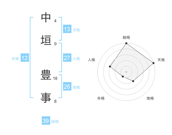 中垣 豊事さんを姓名の画数から五運を鑑定