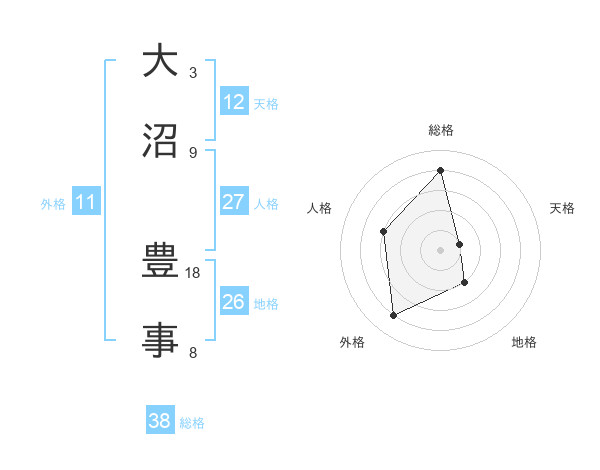 大沼 豊事さんの総格は38画の4点