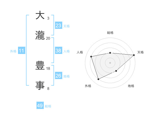大瀧 豊事さんを姓名の画数から五運を鑑定