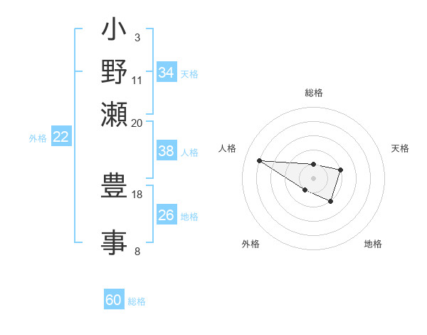 小野瀬 豊事さんを姓名の画数から五運を鑑定