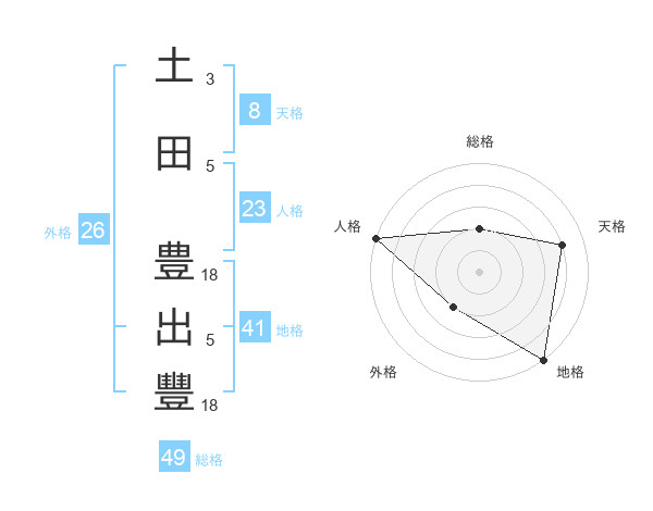 土田 豊出豐さんを姓名の画数から五運を鑑定