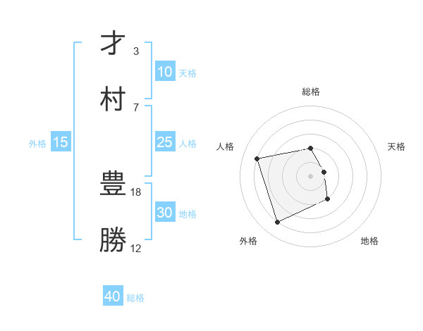才村 豊勝さんの総格は40画の2点!