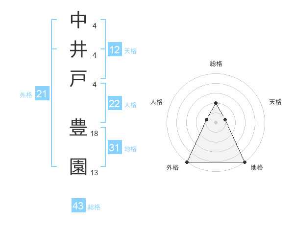 中井戸 豊園さんの総格は43画の2点!
