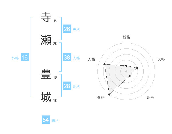 寺瀬 豊城さんの総格は54画の1点!