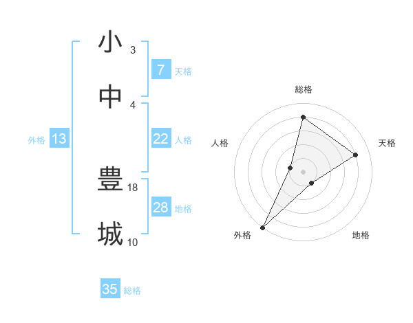 小中 豊城さんの総格は35画の4点!