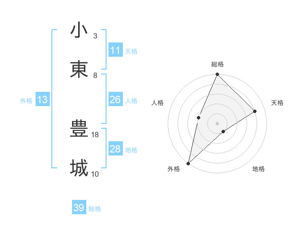 小東 豊城さんの総格は39画の5点!