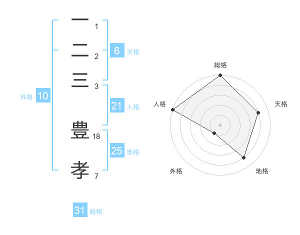 一二三 豊孝さんを姓名の画数から五運を鑑定
