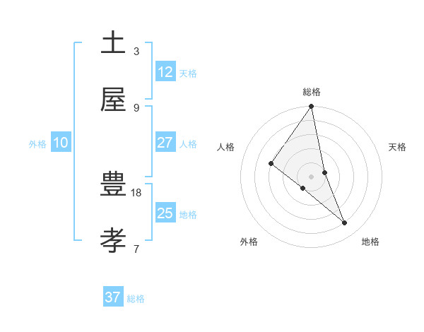 土屋 豊孝さんを姓名の画数から五運を鑑定