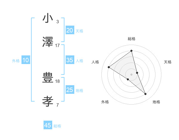 小澤 豊孝さんの総格は45画の4点!