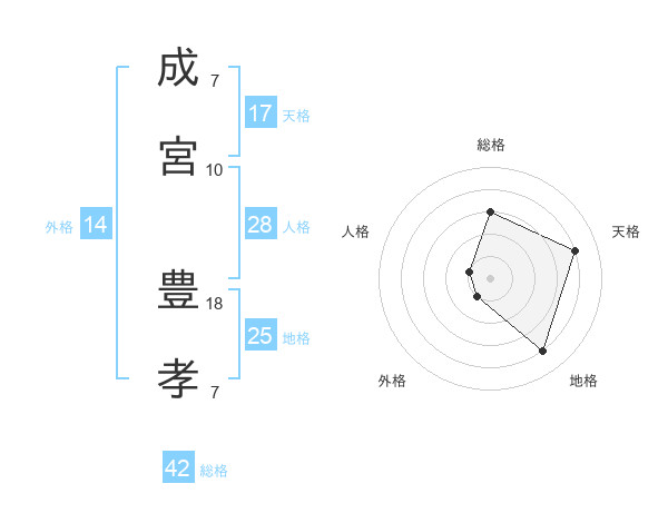 成宮 豊孝さんの天格は17画の4点!