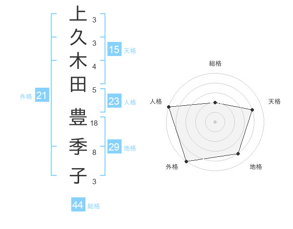 上久木田 豊季子さんを姓名の画数から五運を鑑定