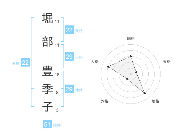 堀部 豊季子さんを姓名の画数から五運を鑑定