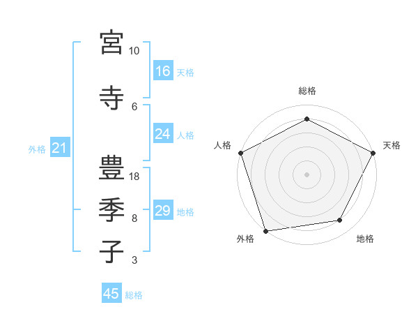 宮寺 豊季子さんを姓名の画数から五運を鑑定
