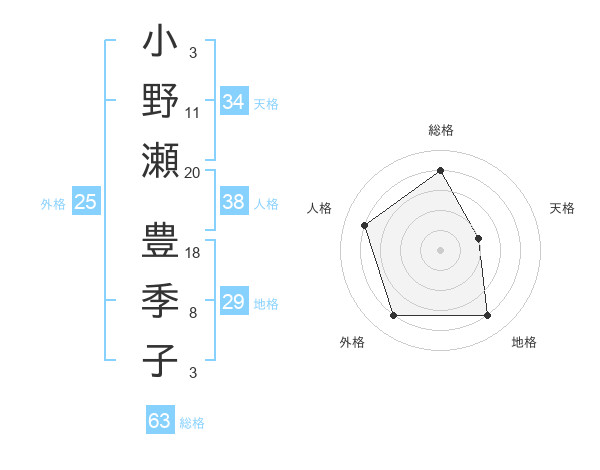 小野瀬 豊季子さんを姓名の画数から五運を鑑定