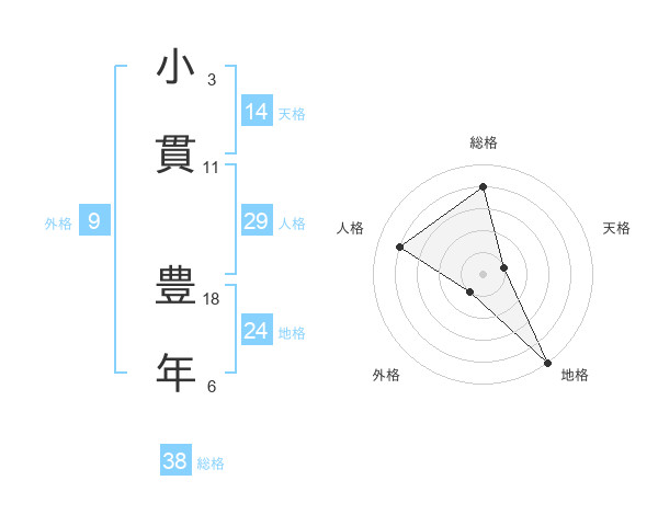 小貫 豊年さんの総格は38画の4点!