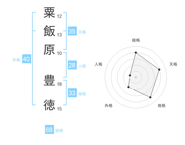粟飯原 豊徳さんを姓名の画数から五運を鑑定