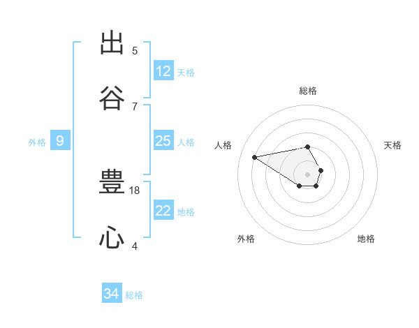 出谷 豊心さんを姓名の画数から五運を鑑定