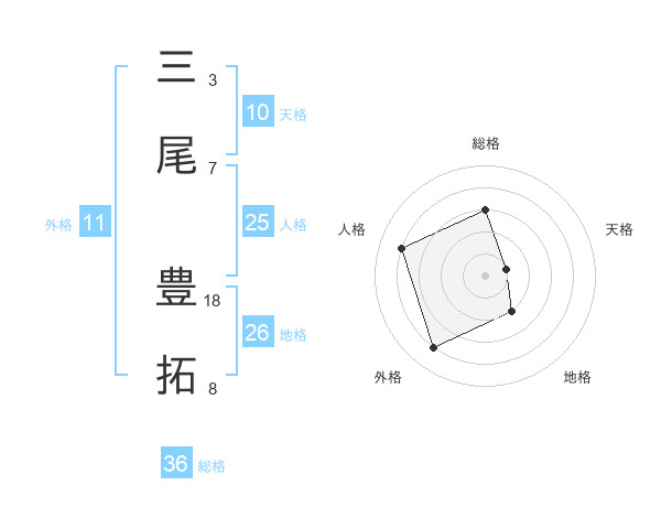 三尾 豊拓さんを姓名の画数から五運を鑑定